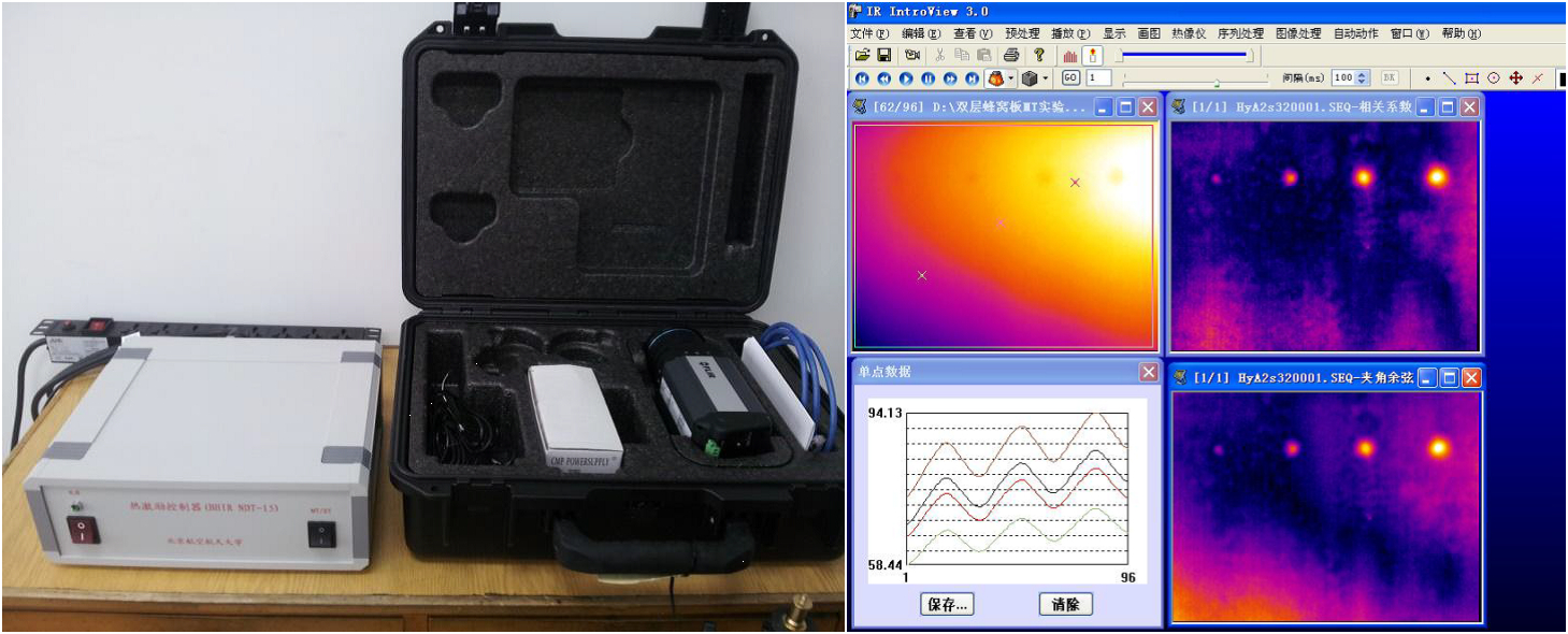 热激励控制器和热像仪(左),软件及雷达罩试件检测结果(右)