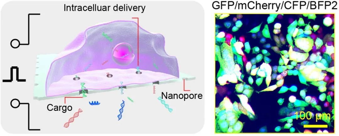 “在早期研究中,这种方法往往过于粗暴。”常凌乾解释,“因为电极很大,而细胞很小,通过电场作用产生的状态很随机:细胞可能会被打穿,或者直接死掉,还有可能根本没打开。”