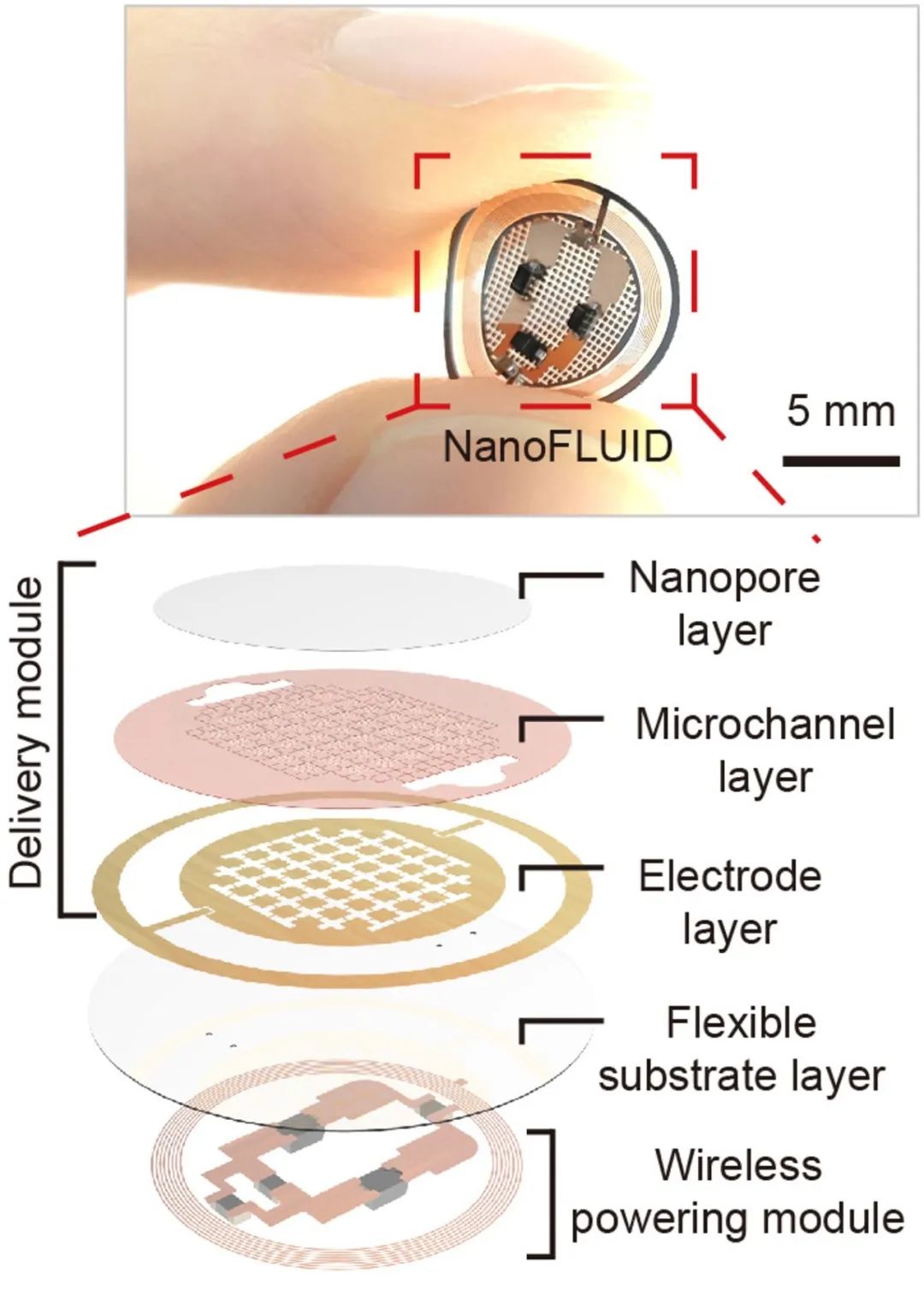 柔性可植入式电子贴片(NanoFLUID)结构图